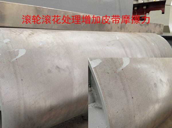 12:滾筒表面滾花處理增加皮帶摩擦力;可減少皮帶打滑,提高板材拋光質(zhì)量,減小不必要的磨料損耗。